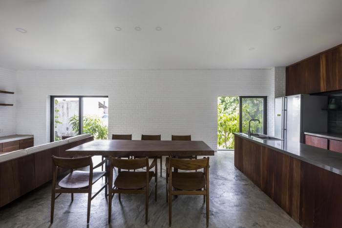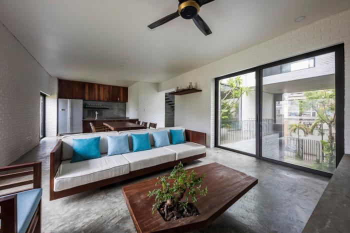 住宅主要由当地的建筑材料制成,均可从附近获得,比如Hoa Son假山矿山的灰色石材和广南省的砖块。此外,裸露的混凝土是越南低技术建设的有效材料,在恶劣的当地气候下也很耐用。