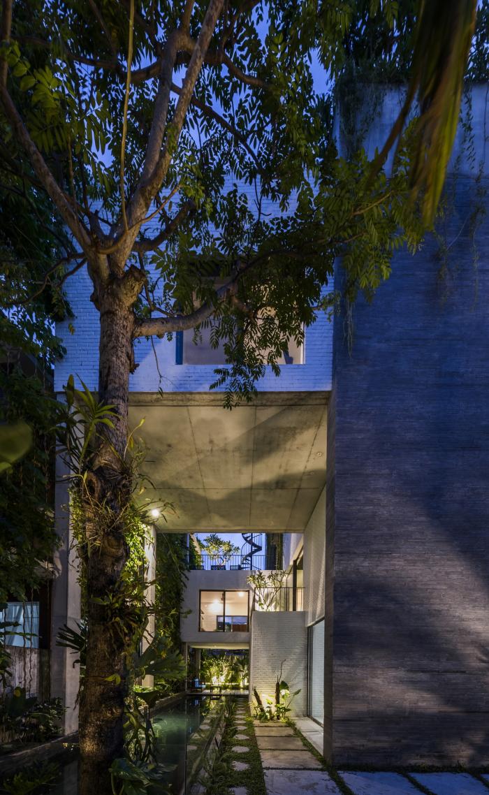 在快速城市化的背景下,越南城市绿化设施的缺乏引发了各种城市问题:空气污染加剧且无法净化,城市无法保留雨水,街道冷却空间不足,以及人们无精打采的加班。这栋住宅是“树木之家”系列中的建筑之一,它承诺通过提供可持续和环保的建筑,为城市景观绿化和改善人居环境做出贡献。T它被热带果树所覆盖,为每个家庭成员创造出宁静祥和的空间,同时也为这座快速发展的城市中心地带保留一块绿色角落。