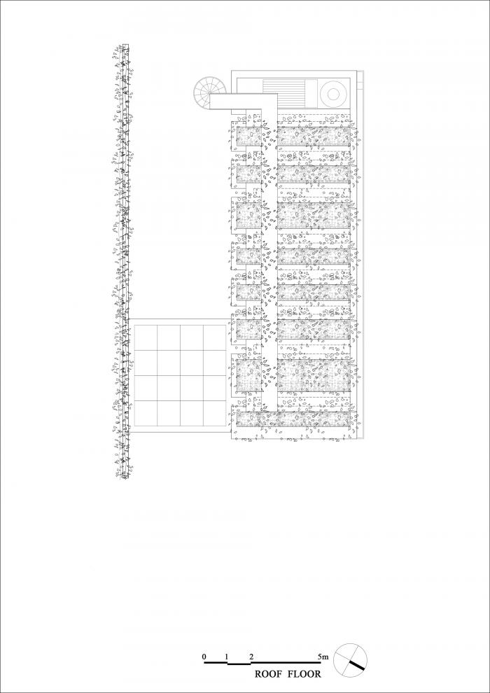 为了使这栋住宅更加可持续化,我们采用了自动浇水系统将水从鱼塘回收循环至屋顶花园,反之亦然,太阳能热水和太阳能电池板系统安装在顶部,可以为家庭提供能量。该设计旨在使建筑能够自给自足地生产绿色食品,并最大限度地减少能源消耗。