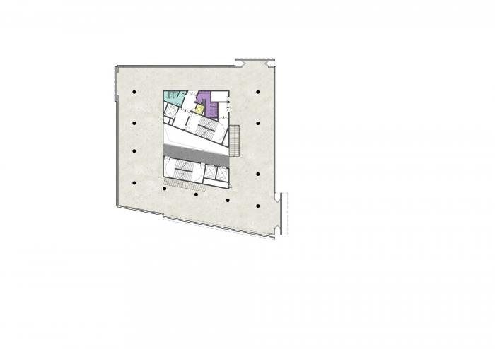 设计从纯粹的方盒子出发,透过立面表皮的折迭,打破方盒子刻板的原始状态。建筑采取不同的折迭方式形成功能性的遮阳、雨篷等实用构件,对应多种街区环境,这种灵活的处理方式同时自然而然地赋予了自身活力与自由的气息。从另一个角度诠释,建筑也表达了一种开放性:冲破方盒子,释放创造力-正是我们对该区规划理念的愿景。