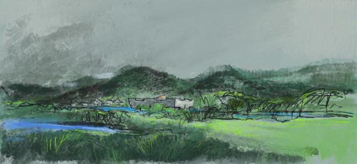 我们优先尊重自然的秩序,在场地原有的基础上劈山理水,并通过地景的设计,重塑建筑与自然的关系,寻求建筑体量与自然风貌的和谐平衡。