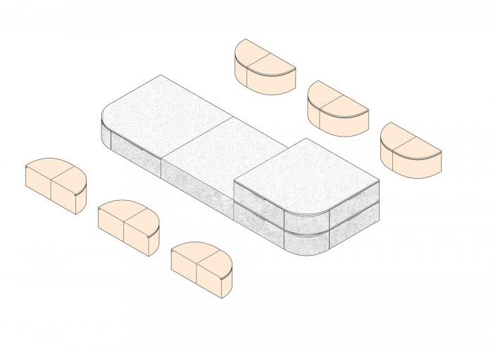 几何体块以及点,线,面的设计语言,形成空间构成主义的美学;同时,不同肌理感材质的对比碰撞,体现了对材质细节的思考。