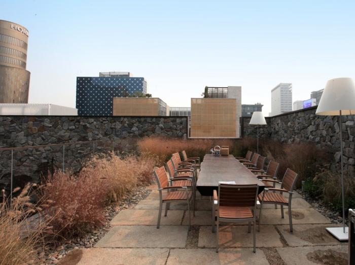 建筑的地下一层引入了多层广场的概念,让工匠和设计师可以与顾客和游客呆在一起。通往广场的砖砌楼梯计划用于时装表演。建筑的屋顶像是通往0914村的旅程的顶峰,被设计成了一座位于隐蔽花园水上的别墅。两层的屋顶区域充满了浅水和银色的草。0914旗舰店希望成为一个中心空间,将积累的制造能力与年轻的设计能量相结合。