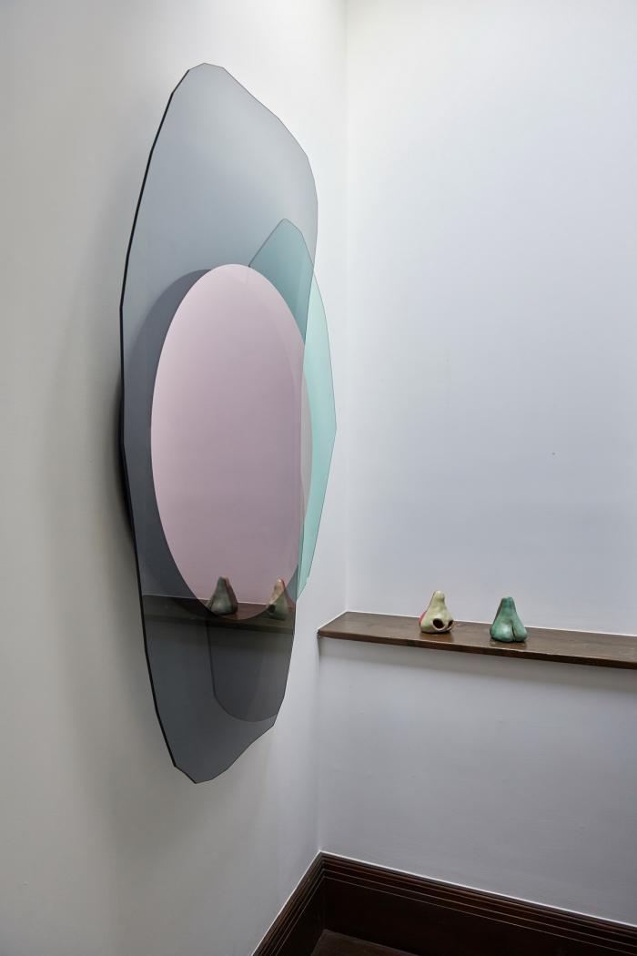 展厅旁侧,墙上挂着的是由荷兰设计工作室STUDIO OS ∆ OOS设计的一面镜子,丰富的层次与有趣的配色,为此次展览画上一个愉悦的结尾。多重的艺术设计,各自风格独具,将自然与生活中的那些普通的事物赋予一些新的概念。我们在静止中追寻,在追寻中探索。