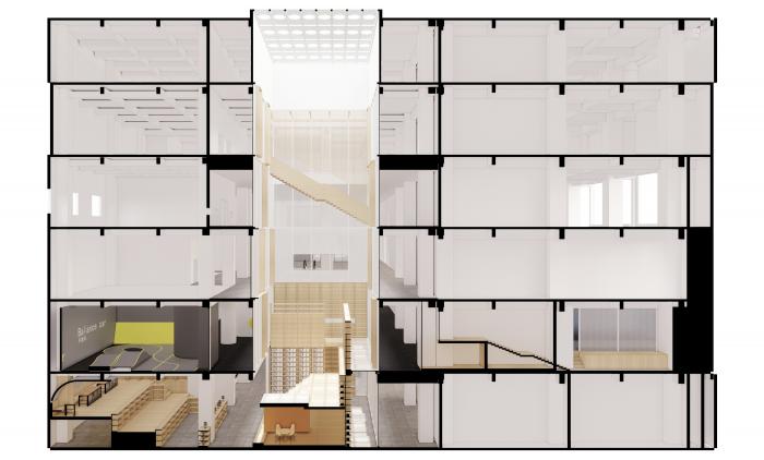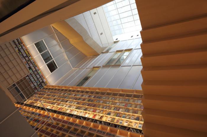 △ 阶梯层叠的书店区 ©Peter Dixie(英)/洛唐建筑摄影