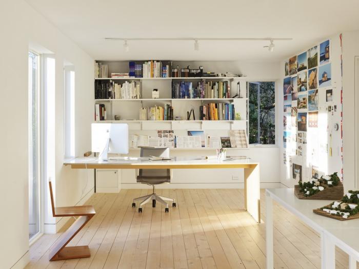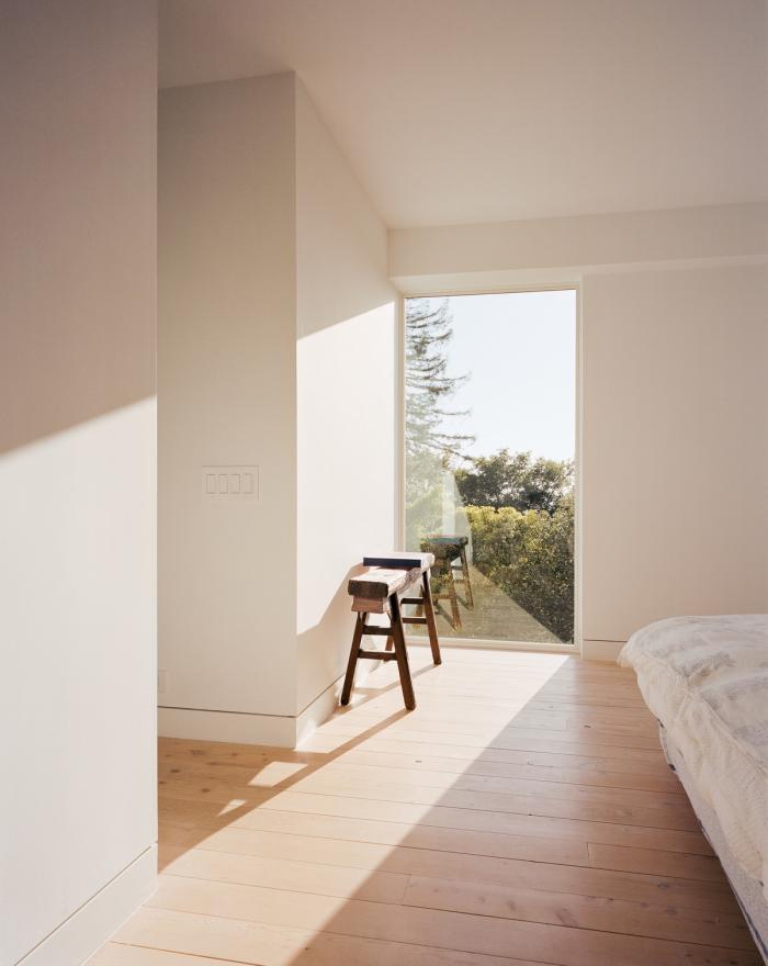 在整个房屋中,小型悬臂结构将空间扩展到主要结构构件之外,直接与地基范围保持一致。在上层,最具特色的悬臂延伸到了西面的外墙之外,使游客沉浸于周围景观中。考虑到全年温和但又寒冷的气候,住宅的起居室在南面和西面安装了玻璃,创造了一个能最大限度地吸收太阳能热量的空间。