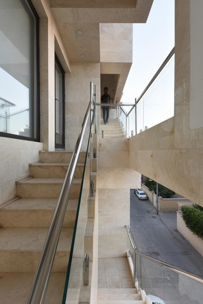 因此,建筑师决定在新办公室的概念设计中考虑交流和工作的自由流动,增设一个额外的楼梯作为连接。该楼梯连接了2层的管理区和销售区,3层的会计区以及屋顶的休息区和绿地。受亚兹德当地建筑的影响,建筑师采用了纯几何和明确的形式,与大规模的转折交通流线相结合,使得建筑师成为这座乌托邦城市中新的现代办公建筑的平台。