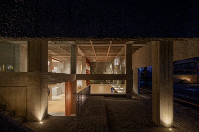 该项目是一个多品牌集合的旗舰店设计,位于大分县的日田市 (Hita)。建筑师试图营造一个透明的室内环境,使得顾客在店内购物时,因时刻感受到外部街道行人的目光而略感不适。