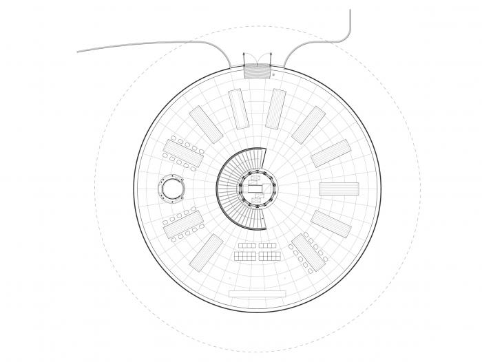 建筑师使用了1461根欧洲白橡木来建造这个支撑,并为其覆盖了温暖的木材表皮。这些白橡木还被切成薄片,依次粘合到了云杉芯上,以保证结构的稳定。建筑师还通过细致的边缘设计,从而保证了空气可以从吸声背衬层的中央结构完全排出。