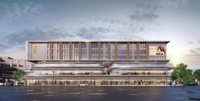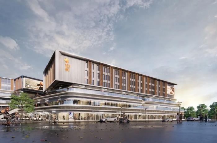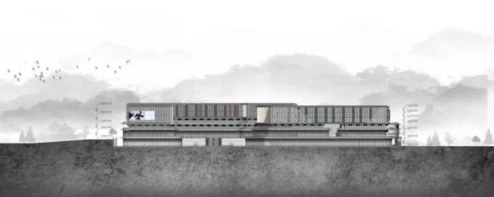 在色彩与材料的选择上,采用分段式立面设计,在不同高差对城市界面做出不同的回应,底层采用曲线造型,包裹感和时尚感并存引流人群;上部分采用现代化直角立面,有利于空间的灵活使用,内置隐框玻璃幕墙,外设翻转竖向构件,营造序列感,适当增加传统元素,呼应传统文脉,同时配备广告位、LED等跳跃元素,色彩变幻的灯光效果,使商业综合体成为区域聚集的中心。