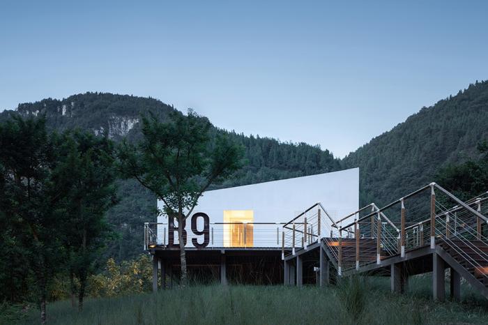 809工厂位于中国湖北省宜昌市郊的下牢溪中,距离市区约30分钟车程,曾经是老三线兵工厂,1990年代逐渐停产并废弃。项目用地面积约3公顷,建筑总面积约1.3万平米,整体项目旨在通过对这个废弃工厂的改造和再利用,在保护和展现建筑原始面貌的同时,形成新的使用功能,使废弃工业设施复活,进入当代生活。厂区内建筑分为酒店部分及配套娱乐部分,酒店部分由含有大堂、艺术展厅、四栋客房、西餐厅组成,配套娱乐部分由接待中心、中餐厅、书吧、时光礼堂、亲子活动中心及崖顶茶吧组成。其中新建的崖顶茶吧因其特殊的选址和轻盈的气质,成为了厂区内较为吸引眼球的建筑。