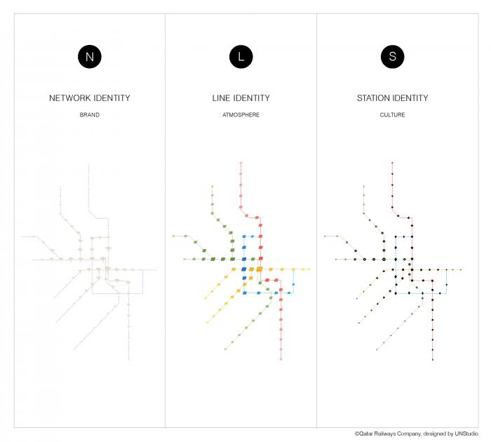 UNStudio专注于移动性的场所营造,建筑师打造了全新多哈地铁网络车站的未来设计愿景,并与卡塔尔铁路建筑部门合作打造一本建筑品牌指南。目前,该项目由卡塔尔铁路公司负责开发完整的铁路系统,其中包含了四条地铁线路,阶段一将开发30站,阶段二则会开发另外40站。