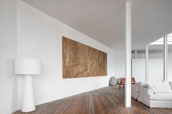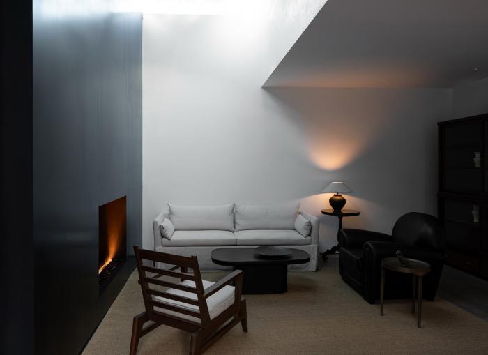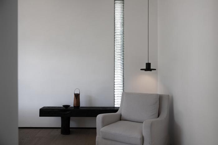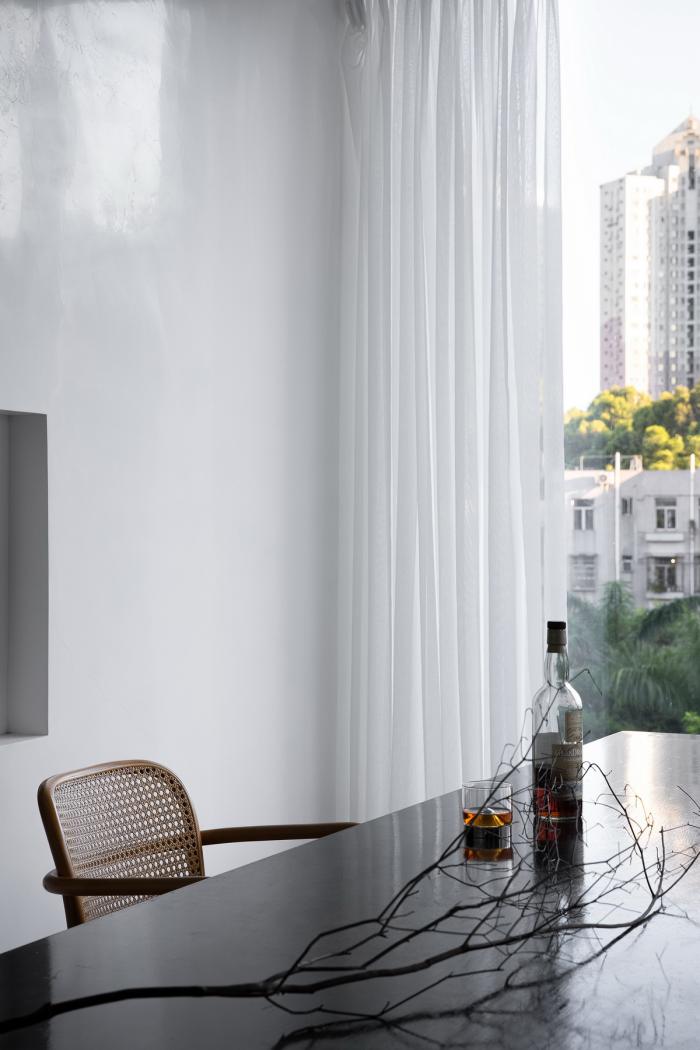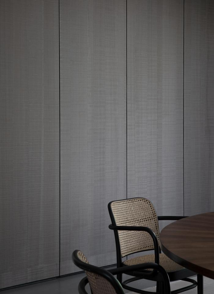 各个不同布置的包厢,没有过于华丽的装饰,淡淡的、缓缓的米白色包揽大部分的空间格调。保留天窗引入自然的阳光,平日里,日光会缓缓从钢板材质的肌理表面移动到另一方的沙发区,婆娑变换的光影不禁让人感叹自然本质的美意。火炉的火焰散发的温柔,把空间滋养出一种平和静谧的气质,停下来体察其中藏有的细微美好。