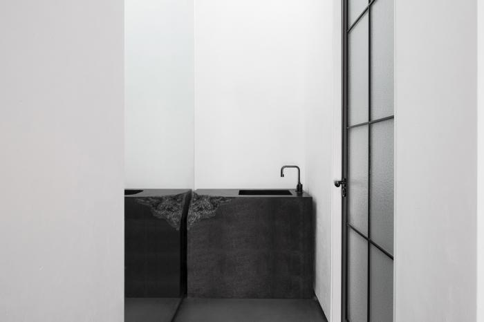 自然石材打造的洗手台,质朴的石材面并没有刻意去保持其完整。自然的美包容千变万化的不完美,它包含着充足的多样性,使我们的眼睛有极大自由去选择、强调以及组织其元素,而且自然景观寓意深刻、情感刺激而又涵义丰富。
