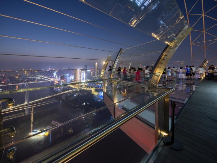 重庆来福士位于长江和嘉陵江两江交汇的朝天门核心区,作为城市地标建筑,它的设计呼应了该区域作为迎官接圣之地与开埠码头的历史背景。该项目的设计延续了萨夫迪事务所对垂直生活空间、宜居城市社区、公共空间友好连接的探索,成为萨夫迪事务所在新加坡滨海湾金沙酒店“空中花园(SkyPark)”项目概念的进阶版本。