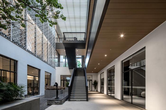 作为展示中心的西园悦府生活馆则相当于西园悦府的人居封面,不仅被赋予建筑形式上的美感,也表达了一种现代高品质的生活方式,赋予了健身、娱乐、儿童活动、餐饮等全方位的功能设计。融入了自“西园诗社”一路流传下来的独特韵味,西园悦府生活馆的设计亦经过了长期而反复的雕琢。