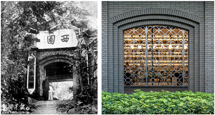 △ 老西园大门(左)与新西园门头(右)
