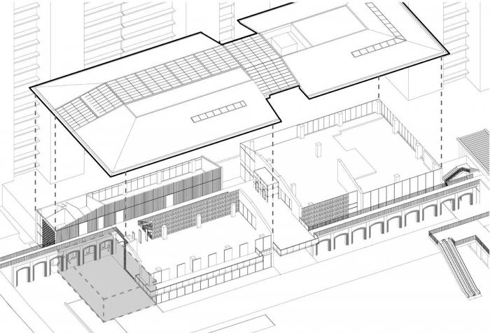 该方案还提取了西园大门门头的拱券元素并调整弧度,进行现代化和优化设计,铝合金窗花与混凝土窗花对西园大门门头窗花的格栅元素进行提取及再现。参考原西园建筑包含的各式各样花格样式,使得建筑呈现很多有趣的灰空间。
