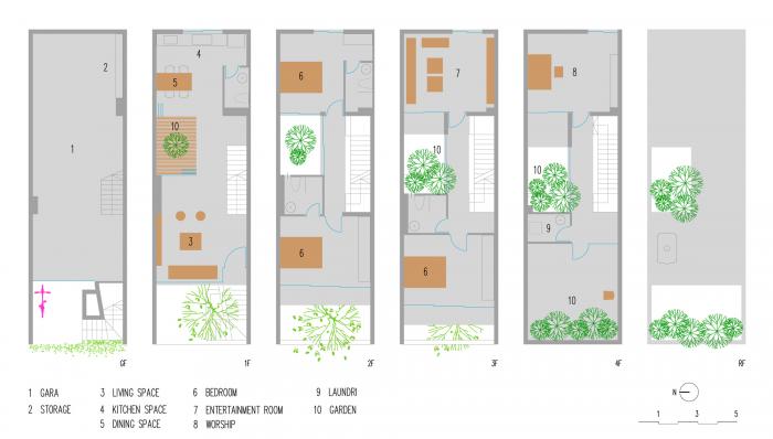 位于越南Tu Son小镇的“林中住宅” 坐落于一块狭小的场地,被分割成5×15米的地块。这片区域正在经历高速工业化及城市化发展。场地存在许多问题,比如来自交通的灰尘和噪音;工业区带来的副作用等。