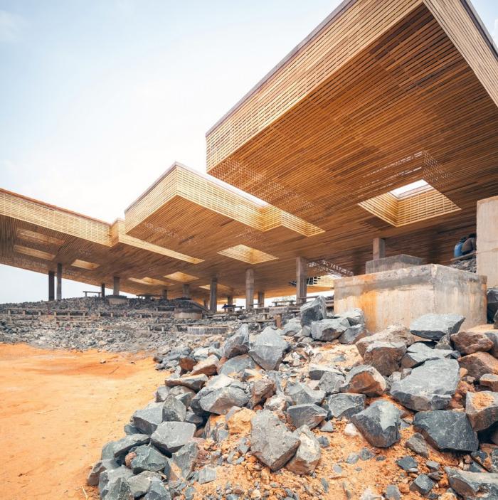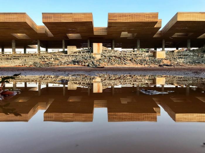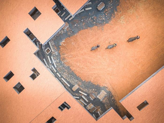 其中70米乘100米的艺术文化庭院更是为各类文化和宗教仪式提供了发生之所。建筑师将屋顶置于较低的位置,以和周围的村庄相映成趣。而1.5米厚的屋顶则面向中心有一个巨大的开口,使得来访者身处其间时,并不会感到空间的压抑,反而是开阔且流通之感。