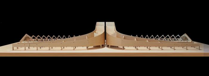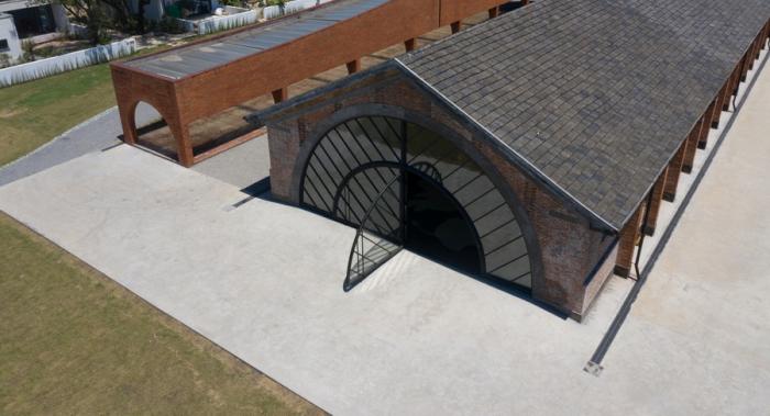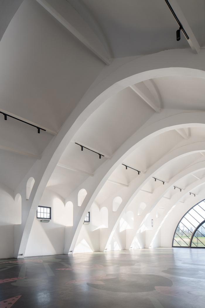 老粮仓结构以混凝土拱圈顶住砖砌望板屋顶,形成双曲面屋顶,为这座粮仓带来戏剧化的结构效果。对于连廊的结构,裸筑选择了结构逻辑清晰的拱圈作为对主粮仓结构的对仗,依次秩序往复。