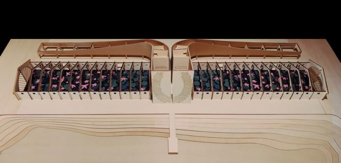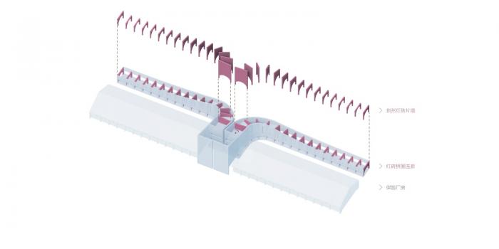 功能上,未来的老粮仓被业主定义为艺术中心的存在。西粮仓将作为商业展厅,东粮仓将作为艺术展厅。由于两座粮仓独特的结构呈现 -混凝土拱圈支撑体系,导致粮仓内部视觉体系完整,拱圈秩序形成完整的场域经验。这股“势”,不可破。且老粮仓年事已高,任何不属于原结构的东西,都会成其“负担”。因此,我们得出一个结论:东西粮仓应是两座“纯展厅空间”,而将艺术中心所需要的辅助功能,在外部解决。