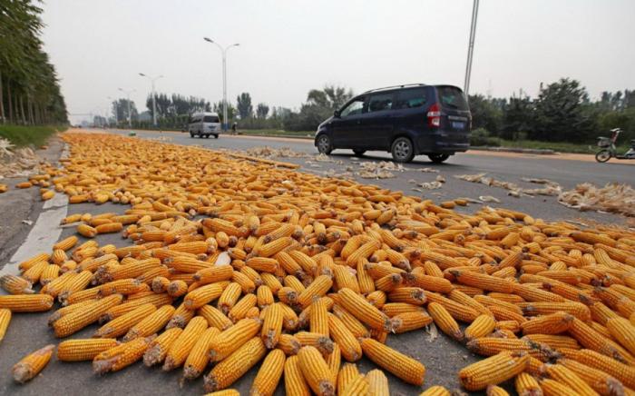 △ 道路边晾晒的谷物