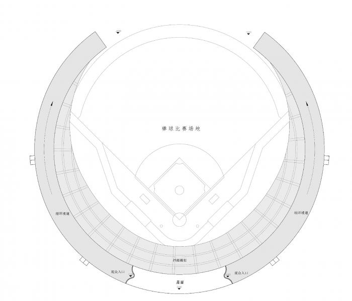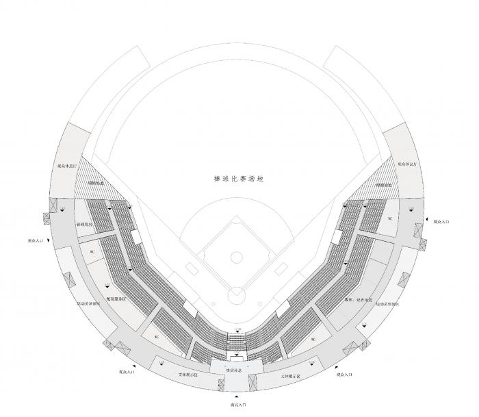棒球运动区,生活区,商业区,分区明确,互不干扰又互相联系。