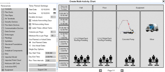 通过多活动图表,快速查看工人和机械的空闲时间,以便于合理安排施工任务