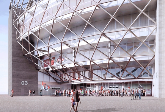 这座球场将成为荷兰顶级足球俱乐部“费耶诺德”的新主场,将坐落在尼乌韦-马斯河沿岸,这是荷兰大都会建筑工作室重建鹿特丹祖伊德(Rotterdam Zuid)总体规划的一部分。