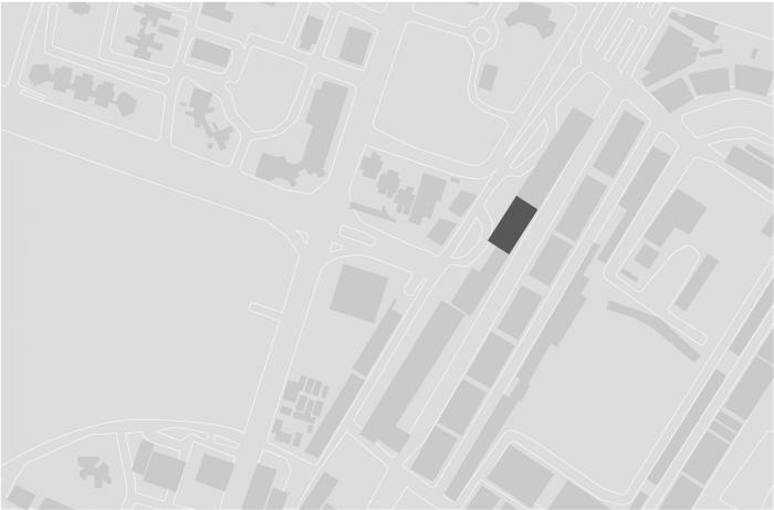 入口外立面的材质我们运用了泡沫铝和石材的穿插,在原有的结构柱体基础上将柱体放大至一个夸张的尺度,泡沫铝在与柱体的穿插中形成“人造卫星”的同时充当二楼办公的挡板。