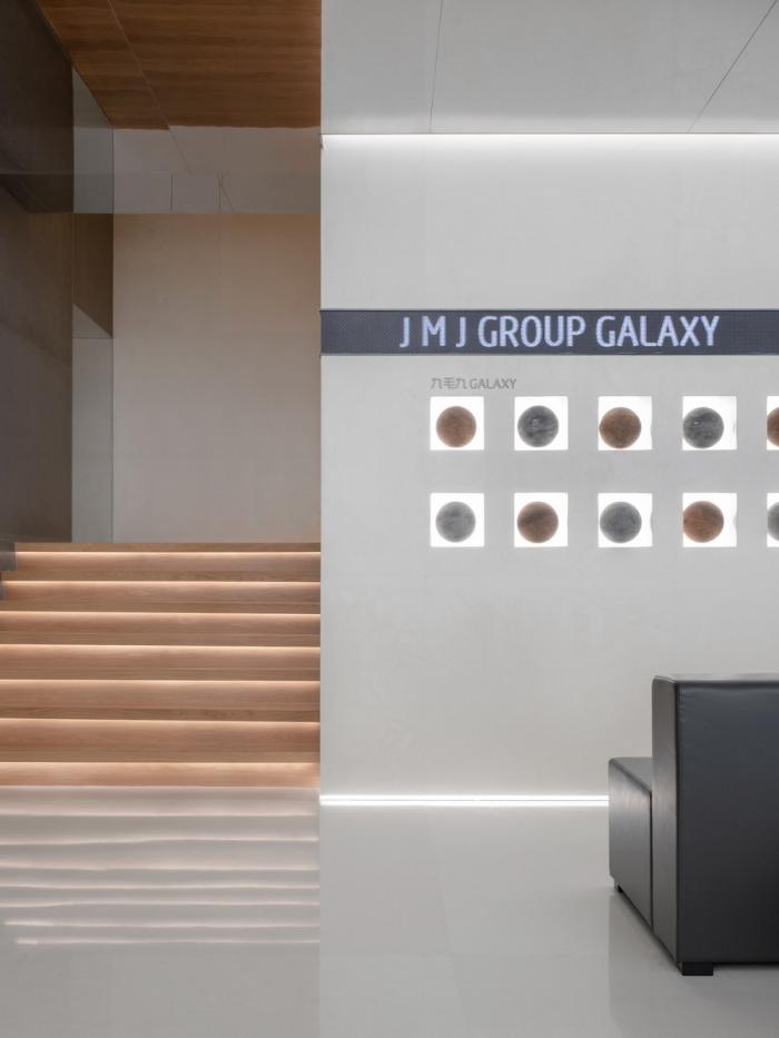 我们希望用简单的形体带来对既定事物的陌生感,大堂入口灵感来自太空人造卫星,从天而降,坐落在九毛九入口处以指引集团方向,守护九毛九的每一颗“星体”……
