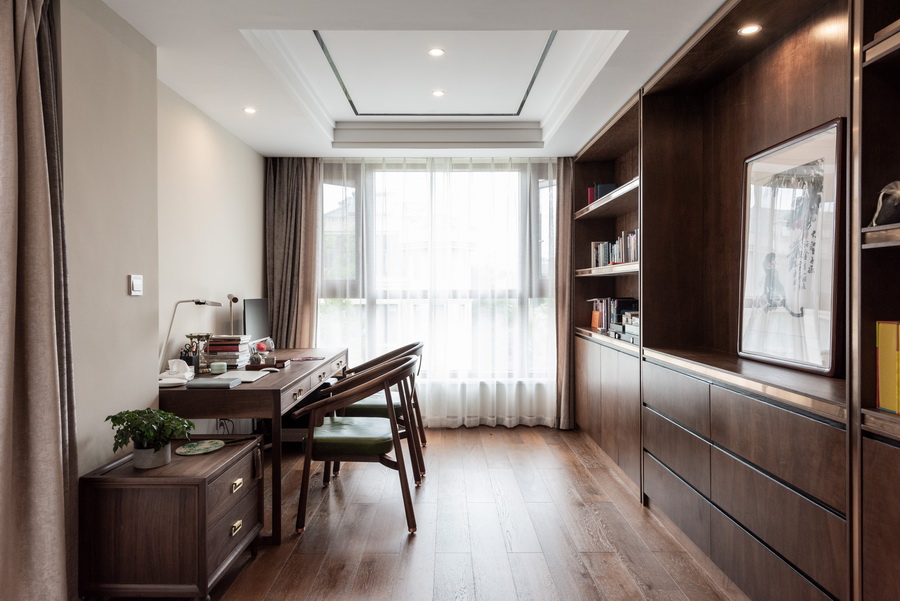 书房的设计我延续了“图书馆”的概念,营造一个明亮轻松的阅读空间,让家人在此享受阅读的乐趣。