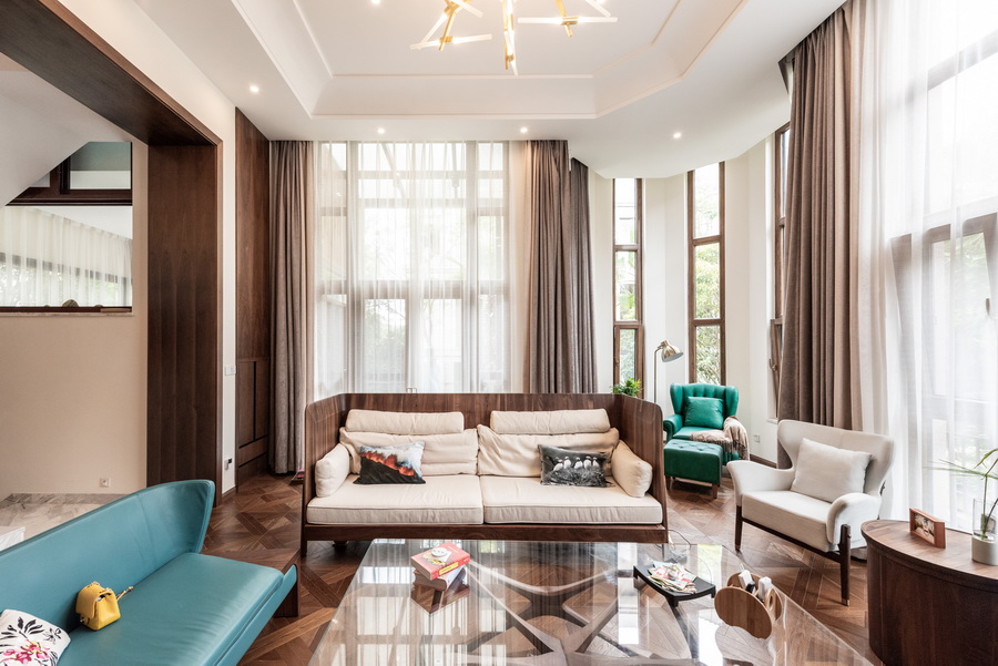 本案坐落于玉溪·城市林语。原始一层的空间布局和动线存在很大的问题。于是我对它进行了改造,除了解决空间布局和动线流畅问题,另外还增加了独立的餐厅和茶室。