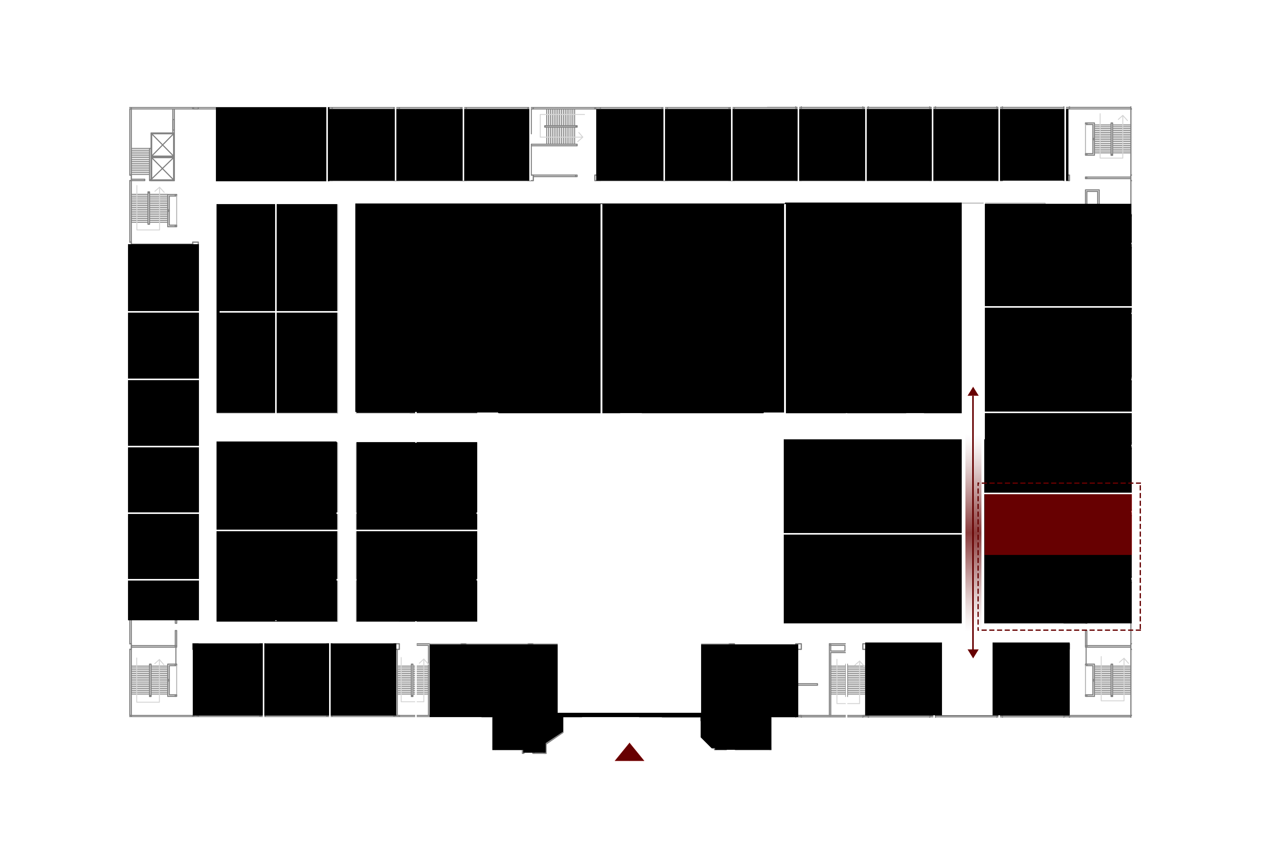 人从大门进从次入口出,经过了这些前面的店后,我们需要给人透气的空间,让人经过前方旧商业气息的轰炸后有一个新的发现,这种感觉就像一个人穿梭在都市中,眼前突然出现一片没有尽头的草原,会产生兴奋的状态。
