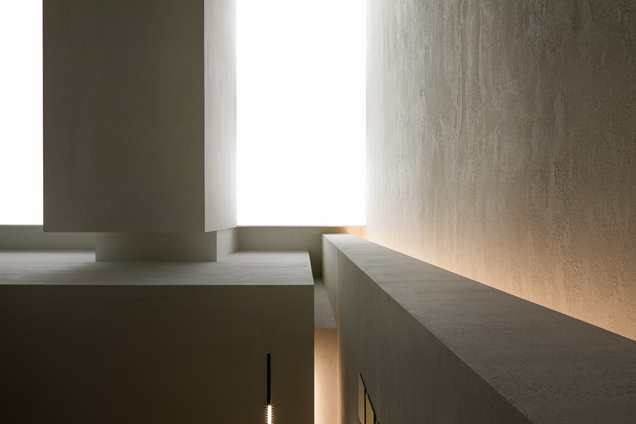 空间找到形状,并通过优雅朴素的几何形状变得可触摸,感受透气的质感。让空间在一个悬浮的感受中自由流动。