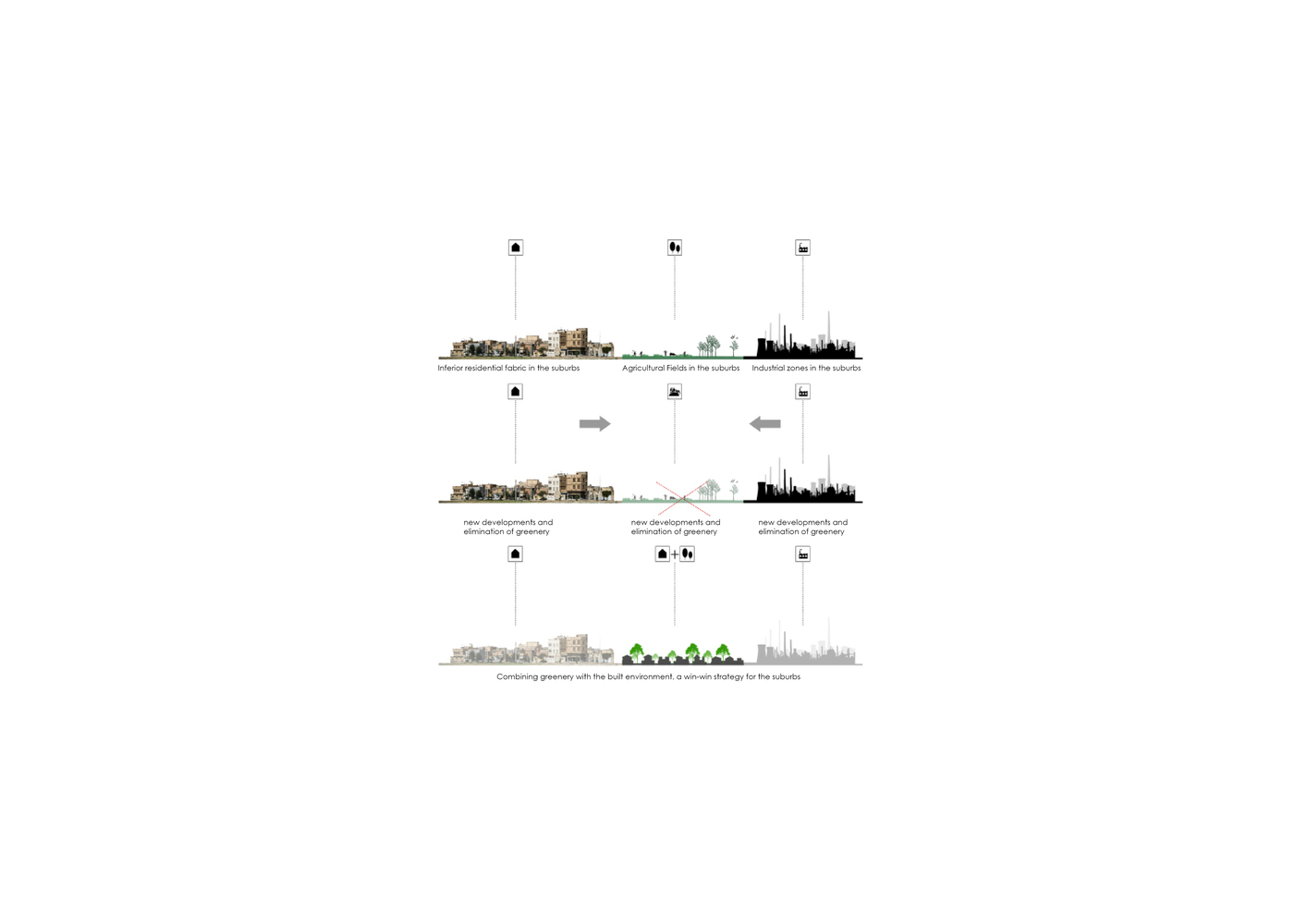 设计过程是通过思考郊区中不同建筑类型之间,主要指工业、农业和劣质住宅结构的长期对峙关系所激发。这种战斗的赢家通常是低档住宅开发,输家是景观和农田,它们通常难逃被拆除,被密集和低质量的建筑所取代的命运。