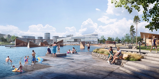 瑞典怀特建筑工作室(White Arkitekter)在挪威卑尔根设计了一个浮式水池,该水池将作为城市海岸线重建的一部分,建成一个名为True Blue的海滨公园。