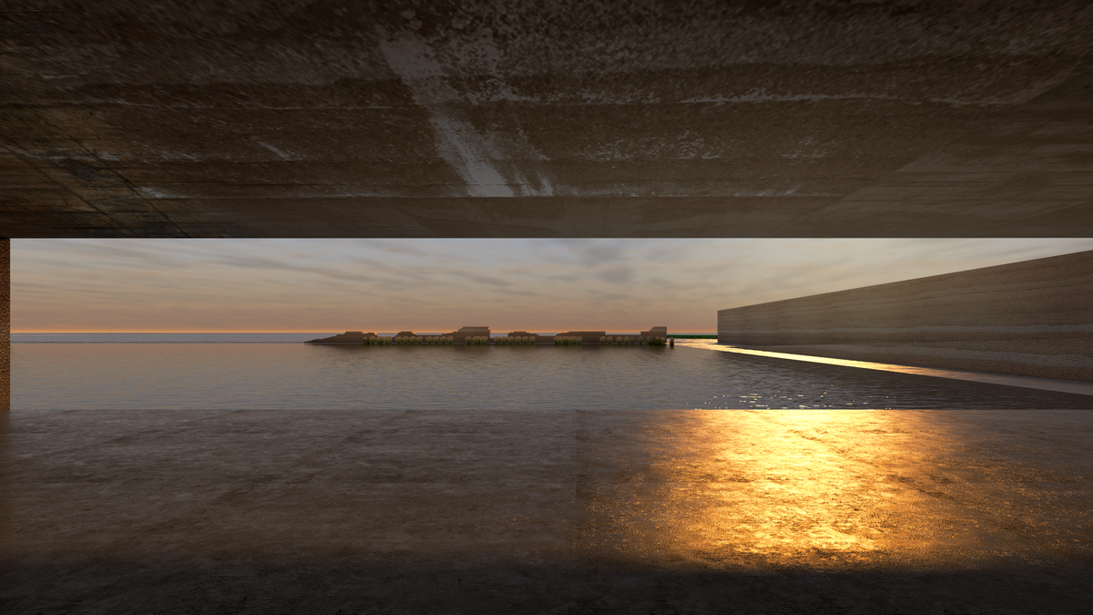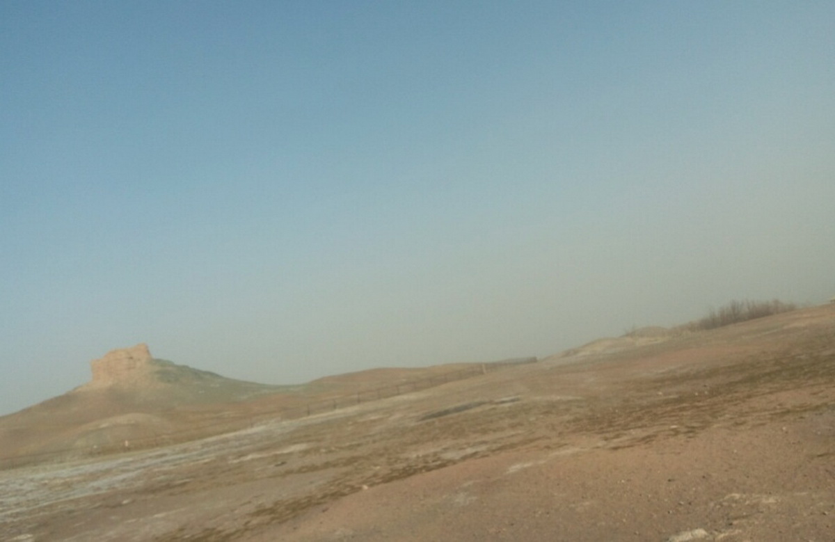 设计所在区域靠近腾格里沙漠。驱车前往,途中经过一段路,公路两边的戈壁滩上不时冒出一些土长城遗迹和烽火台残垣,或者一座孤零零的小土房子。这个景象有时候模糊有时候清楚,就像威尼斯的海边教堂一样。只不过威尼斯是因为冬天起雾,这里是因为春天多有风沙。