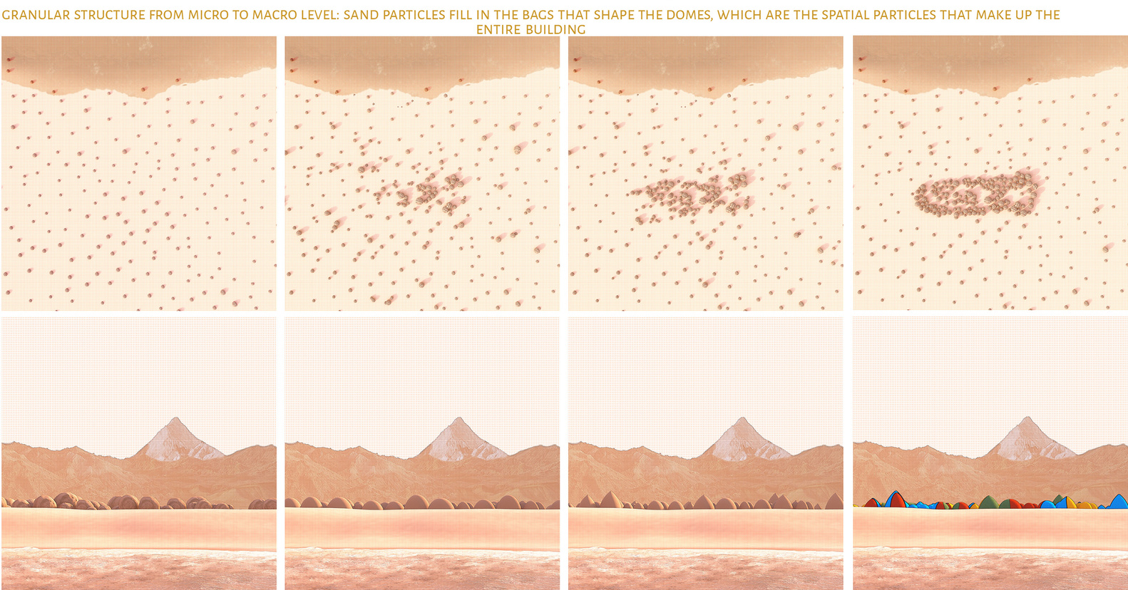 膨胀的土地:这些色彩缤纷的小圆顶共同编织出了霍尔木兹岛上的彩虹地形。每一个圆顶建筑都使用了霍尔木兹码头的挖沙,仿佛土地可以自我膨胀来创造栖居空间那般。