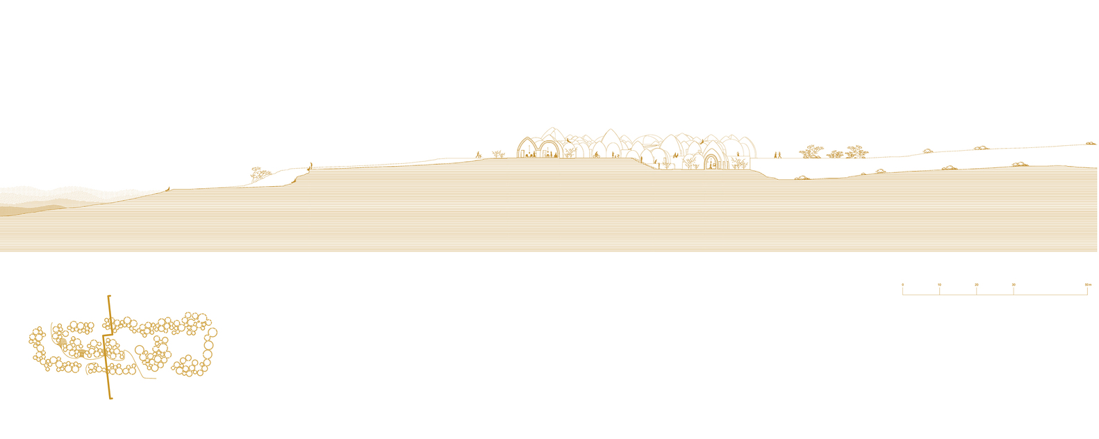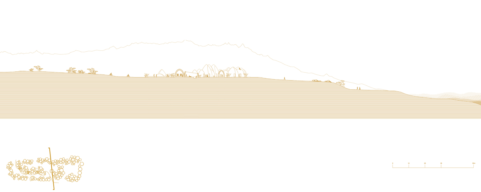 永恒的Nader Khalili夯土技术:霍尔木兹岛的“存在感”系列项目旨在通过建筑空间来建立人与人之间的信任关系,以促进当地居民的参与感和介入度。因此,建筑师通过一些列小尺度的圆顶造型来传承并延续当地的Nader Khalili夯土技术。同时,圆顶造型也是常见的一种建筑语言。而小尺度空间的营造,使得当地的手工艺人和初学者得以合作,起到了教学相长的作用。