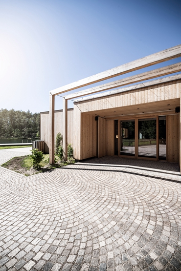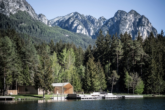 意大利“建筑网络工作室”(Network of Architecture)在意大利南蒂罗尔(South Tyrol)风景如画的“沃尔塞-韦伊尔湖(Volser Weiher)旁建造了一个木材咖啡厅和更衣室。