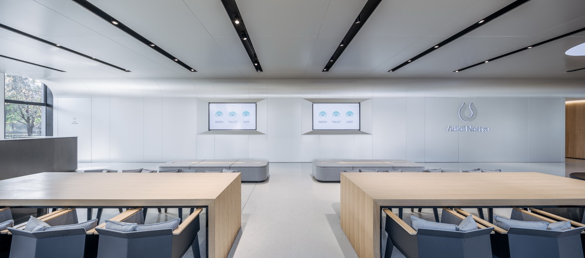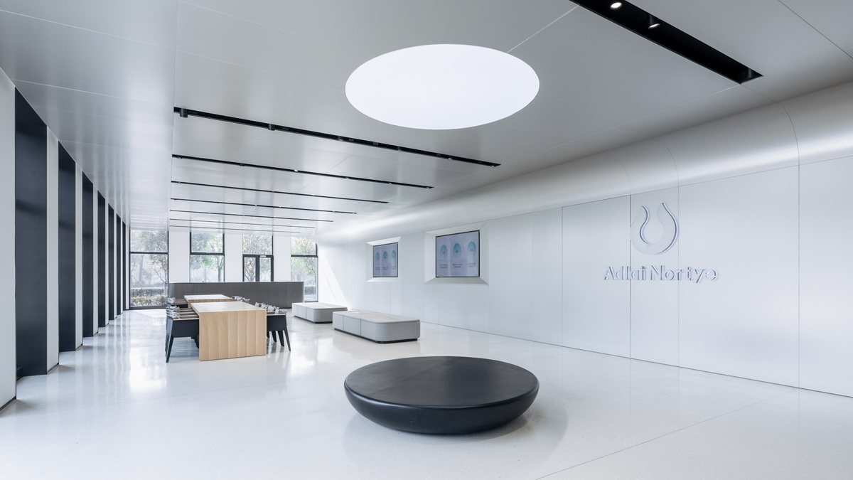 在设计的决定权上,阿诺医药给予了我们绝对的信任。设计之初,我们深度参与了企业总部的选址。在考察了多个园区后,我们选择了坐落于杭州市余杭区的乐富海邦园作为最终的企业总部新址。园区位于阿里巴巴总部所在的杭州未来科技城,这是一个举世瞩目的新城,任何崭新的事物在这里发生都不足为奇。