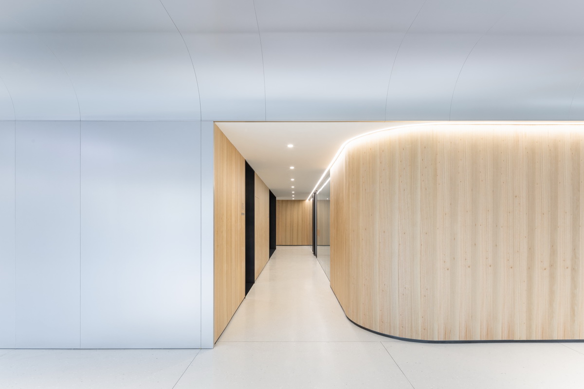 △ 6号楼1F走廊的木饰面圆角走廊