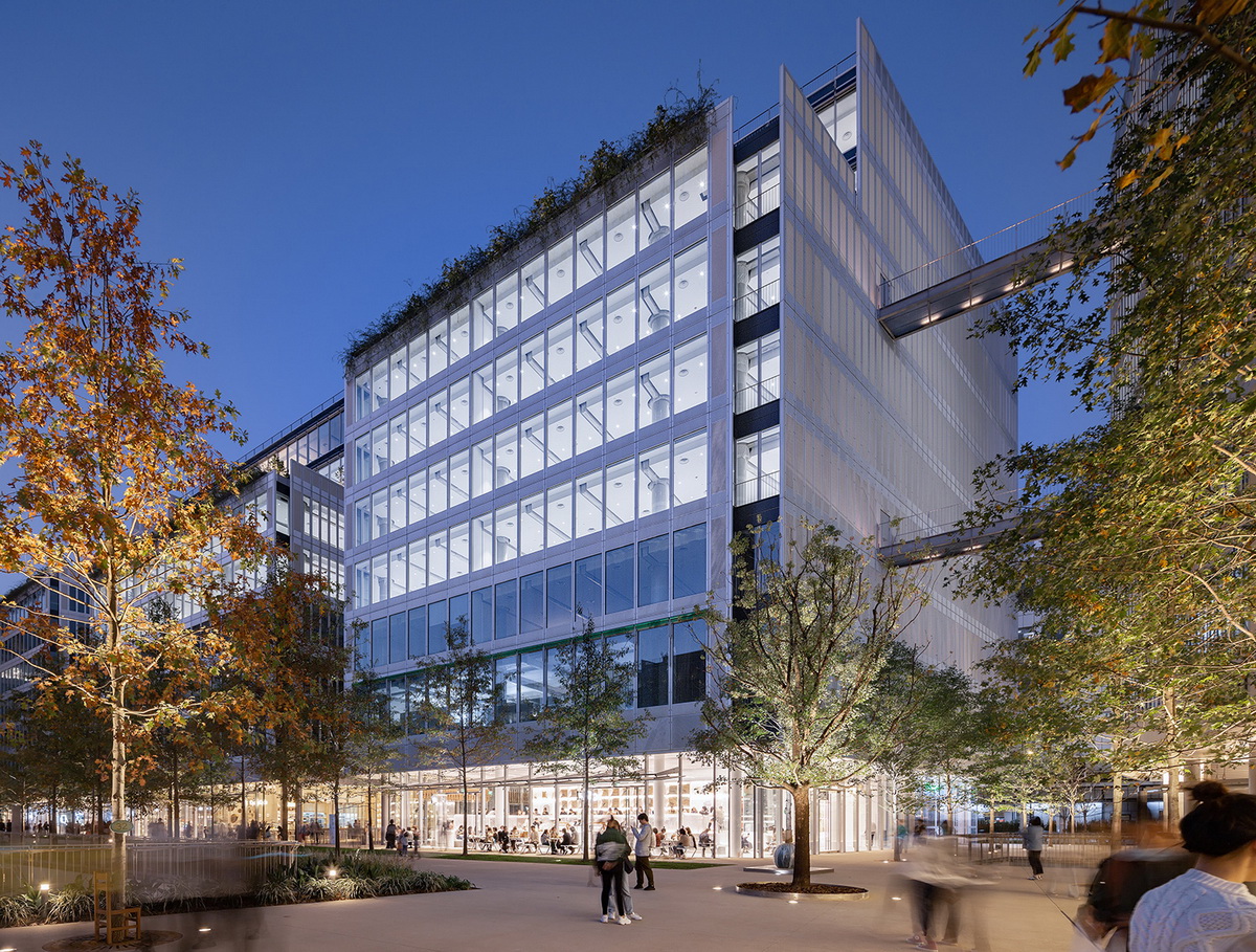 最原始的设计概念是一个苹果,在硬质界面的包裹下,拥有一个柔软而丰富的内核——为了让广场获得更多的空气和阳光,伦佐· 皮亚诺在设计时特意将原本可建的 11 层降至 9 层,并在 7层和 8层做了退台处理,保证在每个角落都能有充足的日照。建筑底层的空间强调透明和视线渗透也同样基于对自然和城市的考虑。因此“天目里”不是一个封闭的办公园区,而是一个绿洲般的“城市客厅”和艺术生活的发生器。丰富的活动和事件都将在这里发生,人的交流活动也会影响空间,成为天目里生命力的核心。