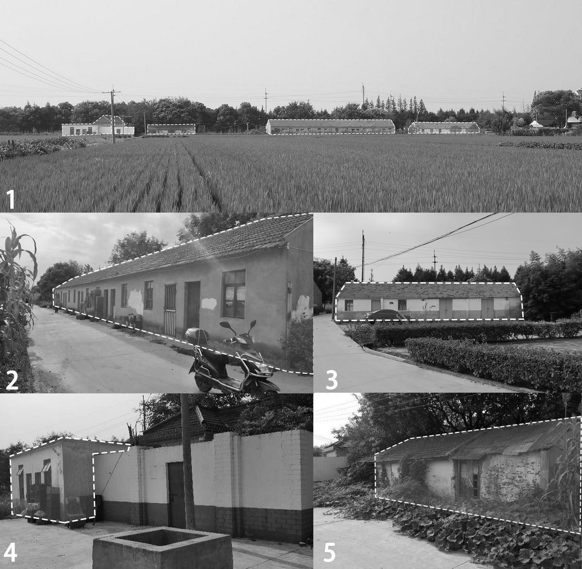 1.场地原貌;2.耕织馆原貌;3.后勤用房原貌;4.睦邻点原貌;5.咖啡馆原场地