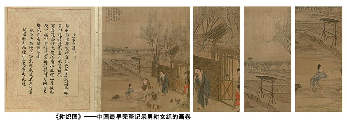 项目伊始,我们思考了项目本身的独特性,即丰富的场地环境与限制条件的冲突,如何使得建筑融于河道、稻田及民居,同时其形式与功能统一,是此次项目的重点。我们从《耕织图》中汲取了灵感,通过对农民的生产要素“房、田、人、水”的梳理,进行人文元素的提取,提炼出乡野生产生活的场景:粮田里、屋檐下、小河边。