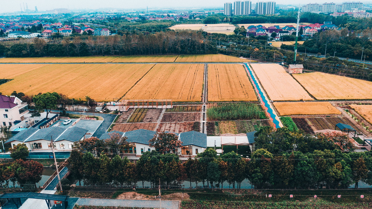 △ 场地鸟瞰:粮田、建筑、河道 ©彭晓凯