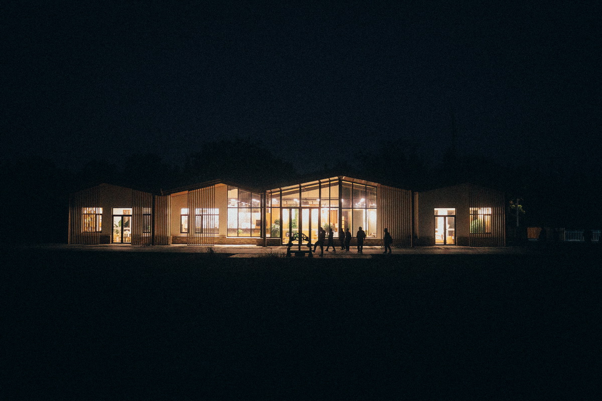 建筑设计充分考量场地因素,成片金黄稻田呈现的旷达感,毫无保留的向人们展示原野气息。相对自由的宏大稻田场地下,我们希望塑造建筑自身的在场性。建筑本身低调的蛰伏在粮田中,建筑作为一个纽带,连接场地与人的关系。