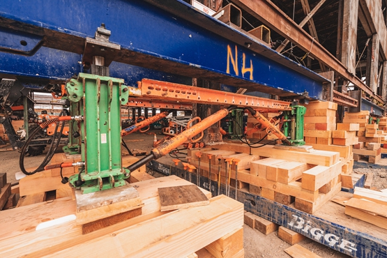 每次提升后,木垛堆放在建筑物下方,然后由钢支撑架代替。